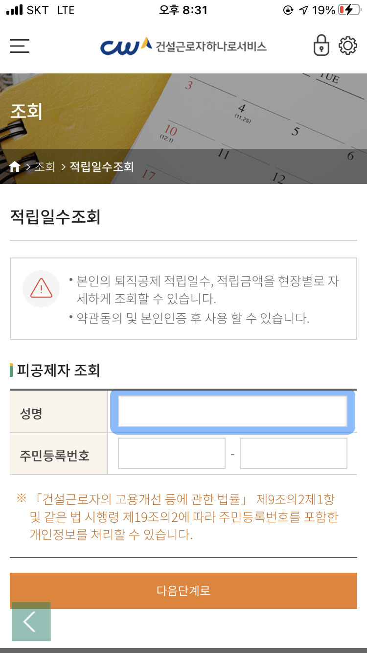 여기서 본인의 성함과 주민번호를 입력하면된다. 여기까지는 너무 간단해서 솔직히 뭐라 할말이 없다.