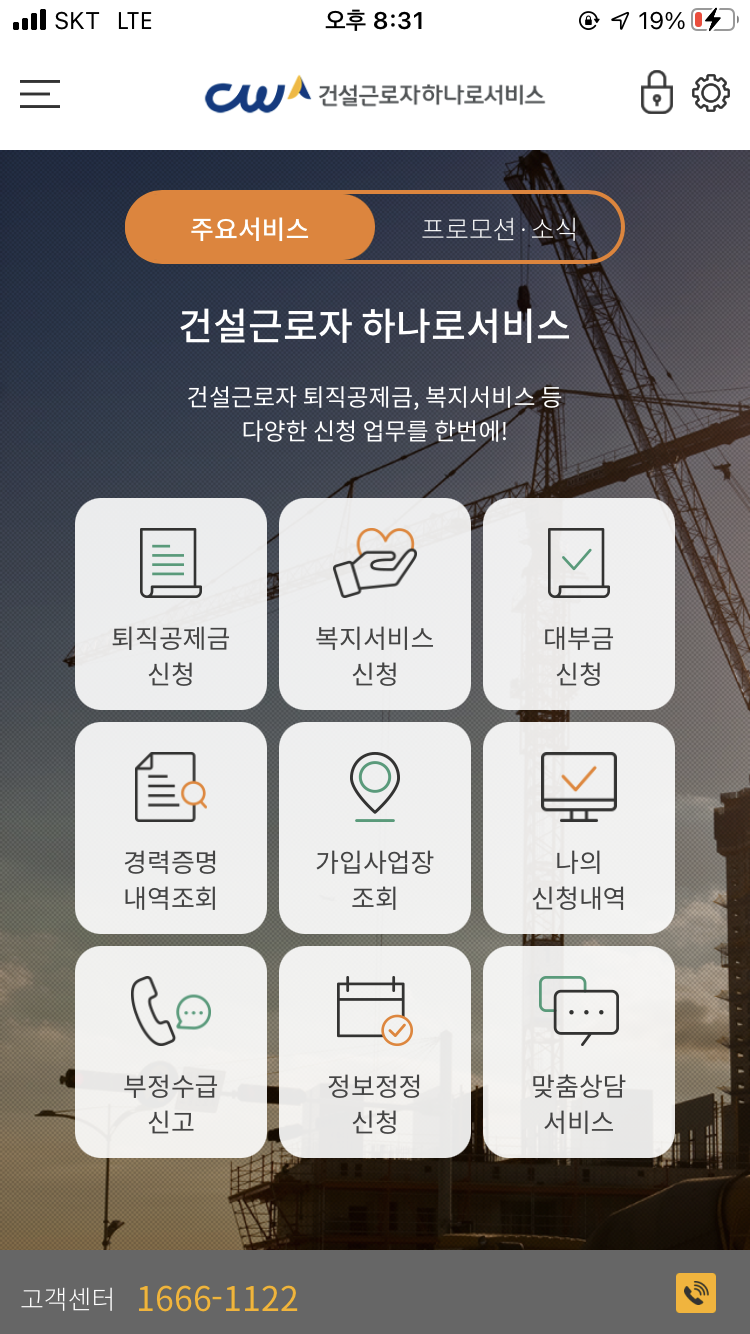 어플에서 "건설근로자공제회"를 검색하면 저렇게 나온다. 당연히 다운을 받고 스마트폰에 일단 설치하자! 간단하다. 참고로 나는 아이폰 기준으로 말했지만 갤럭시도 마찬가지니 똑같은 방법으로 실행한다.